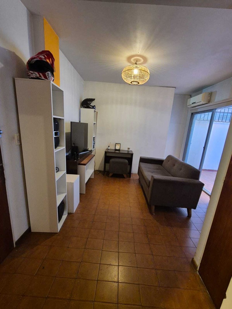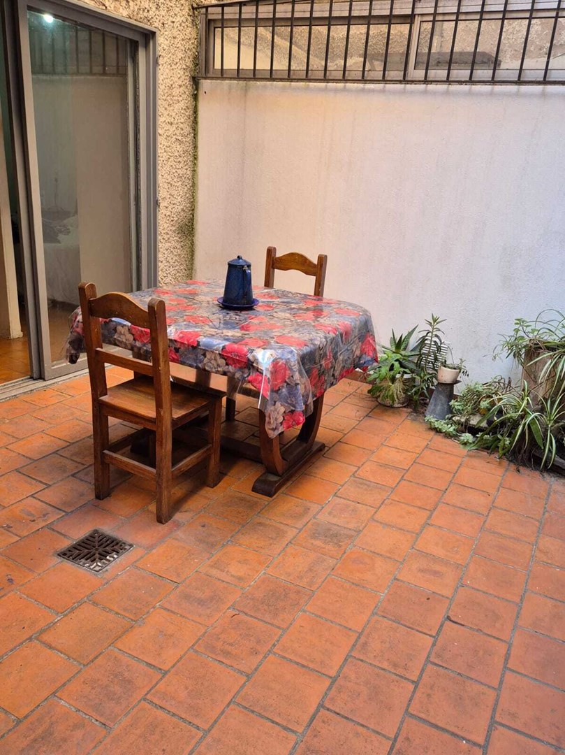 ALQUILER TEMPORAL – ADROGUÉ- VALOR PAQUETE (INCLUYE EXPENSAS, IMPUESTOS Y SERVICIOS Departamento de 2 ambientes, a 1 cuadra de la Plaza de la Estación Ubicación: Edificio Mediterrané, planta baja – Uriburu esquina Seguí. Superficie: 45 m² Opción cochera. Ambientes y equipamiento: Estar con 2 puertas-ventana al patio, sillón de 2 cuerpos, escritorio con banqueta, placard de guardado, perchero, espejo, cortinas roller, split frío/calor y Smart TV 50”. Cocina independiente con muebles de guardado, heladera con freezer, cocina a gas con horno y 4 hornallas, microondas, pava eléctrica, vajilla y utensilios completos. Dormitorio con cama doble, placard de piso a techo, TV 32” con decodificador (smart). Baño completo con bidet. Patio privado y lavadero techado con lavarropas. Condiciones: Alquiler temporal mínimo: 1 mes. Incluye mobiliario y equipamiento completo.